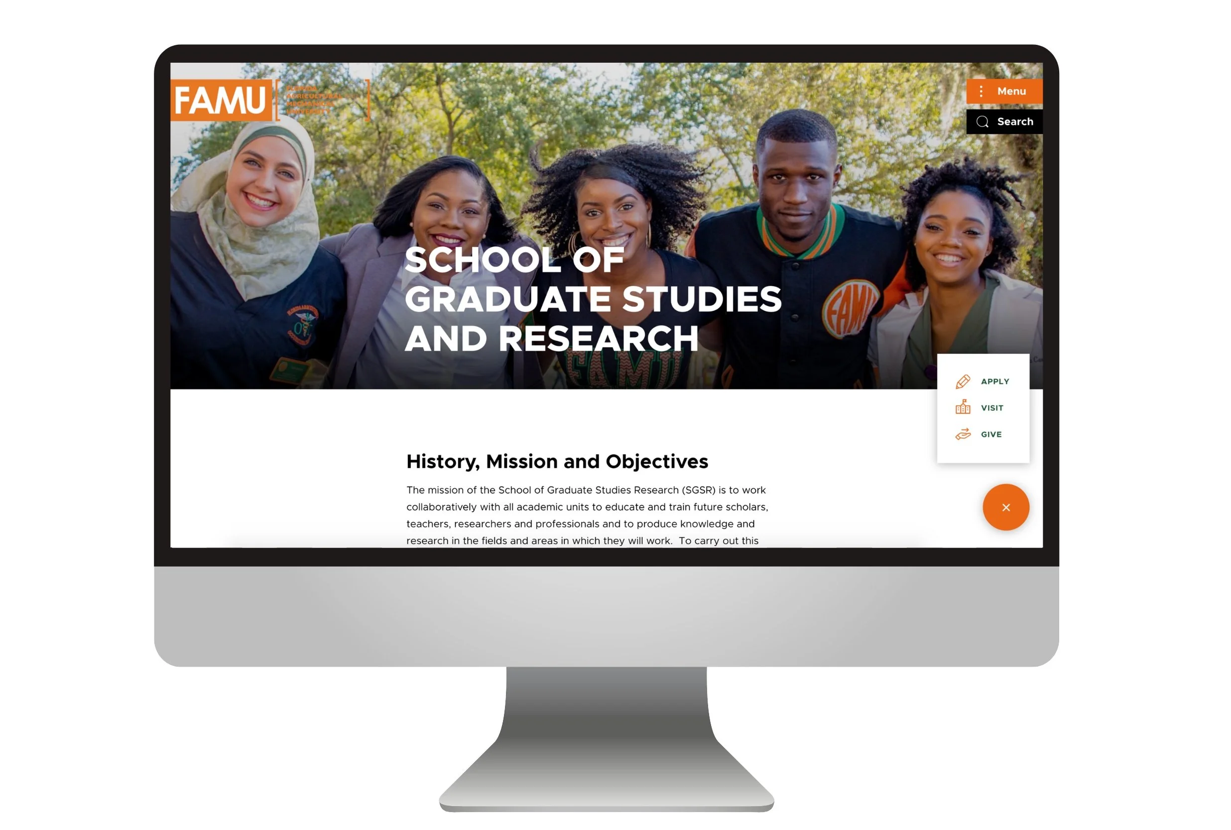 The university underwent a significant redesign in 2021, just 4 weeks before this project was set in motion. As the responsible individual handling the graduate school site, my role entails updating the programs, improving visibility for both the master's and Ph.D. programs, and maintaining optimal consistency with the broader FAMU website, ensuring a seamless and cohesive user experience for all visitors.